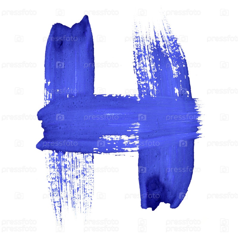 Синяя рукописная буква H на белом фоне