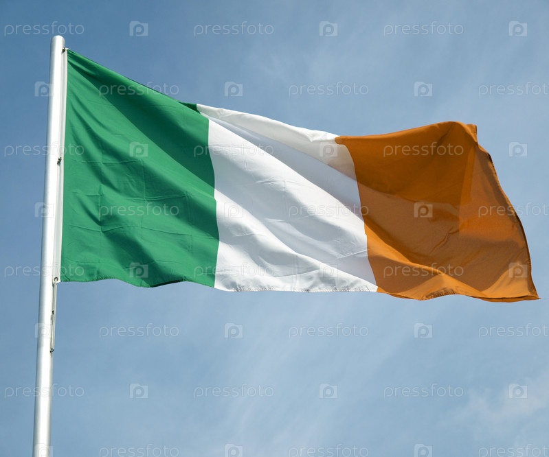 Ирландский флаг на фоне голубого неба