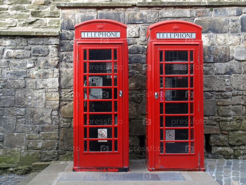 Традиционные красные телефонные будки в Лондоне, Великобритания