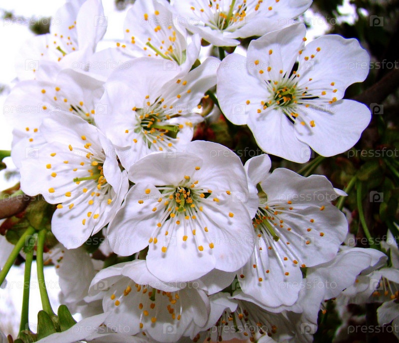 Белые цветки черешни крупным планом