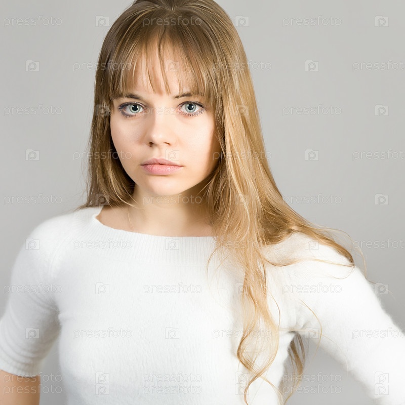 Портрет красивой девушки на сером фоне