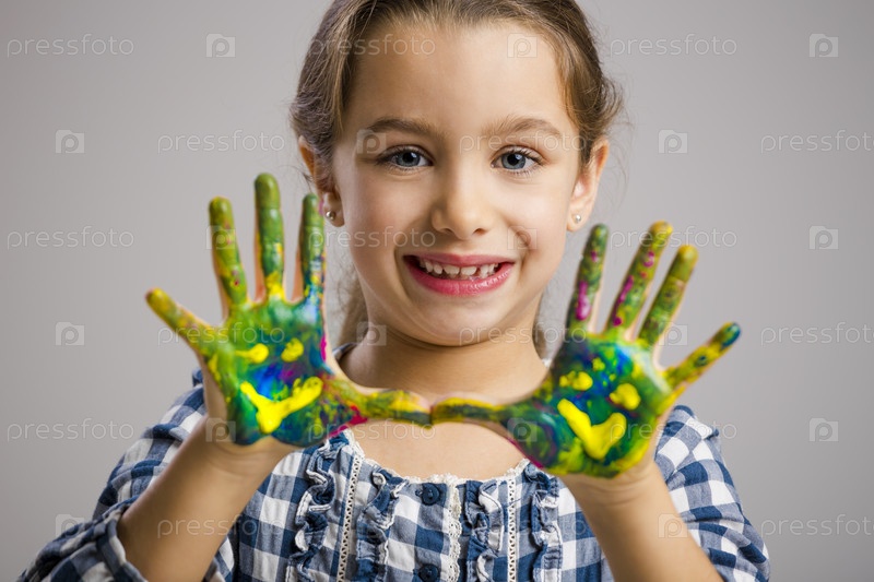 Маленькая девочка с руками в краске