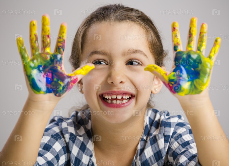 Маленькая девочка с руками в краске