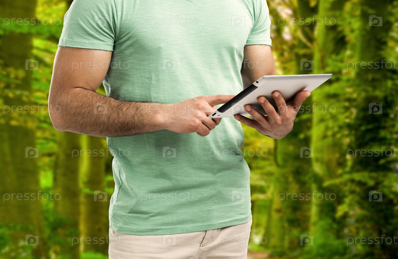 Человек работает с планшетом