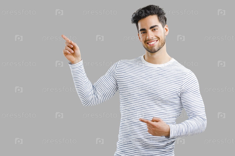 Красивый молодой человек, указывая