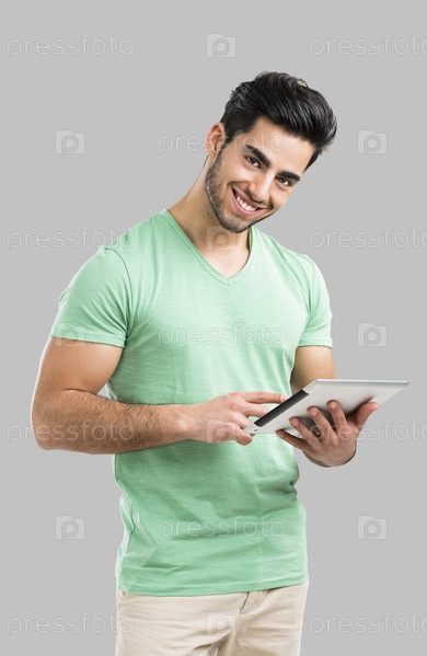 Человек работает с планшетом