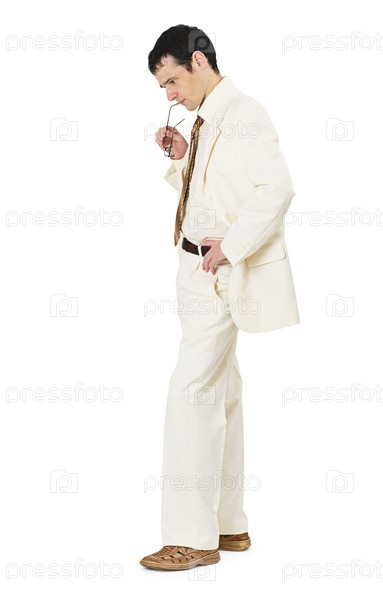 Задумчивый мужчина в белом костюме