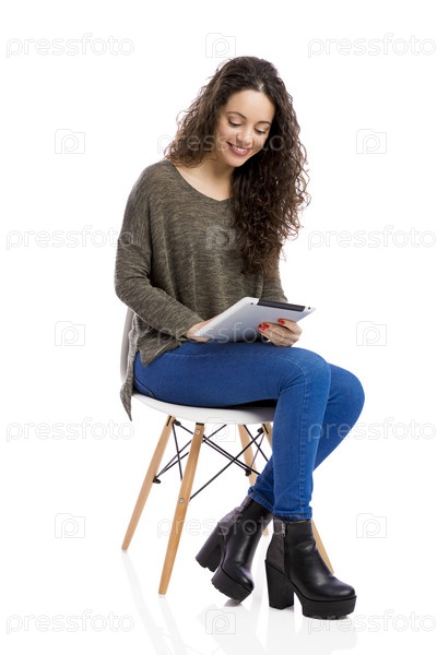 Женщина работает с планшетом