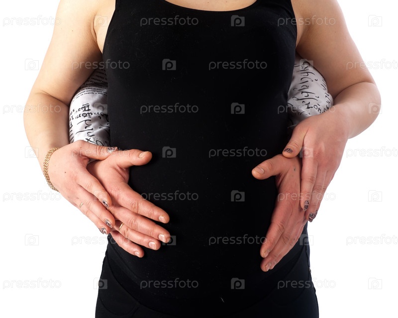 Мужские руки на животе беременной женщины