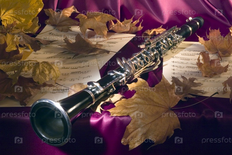 Натюрморт с кларнетом и осенними листьями