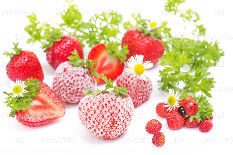 Свежая замороженная клубника на белом фоне