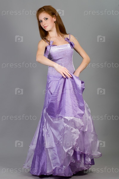 Молодая привлекательная девушка в сиреневом бальном платье