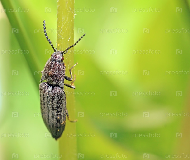 Большой жук на зеленом стебле