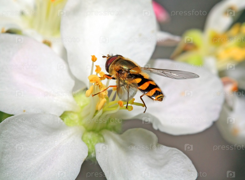 Оса на цветущей яблоне