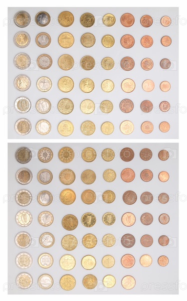 Монеты евро из всех стран Европейского союза