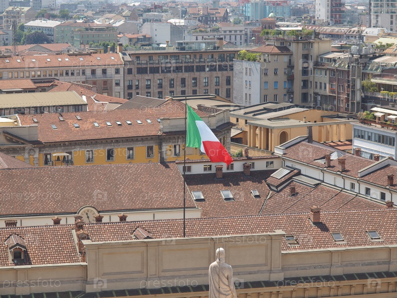 Итальянский флаг на крыше Палаццо Реале (Королевский дворец) в Милане, Италия