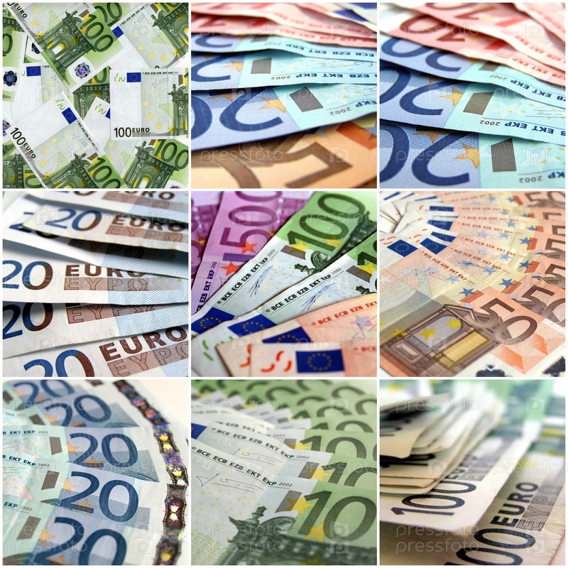 Коллаж с многими банкнотами евро