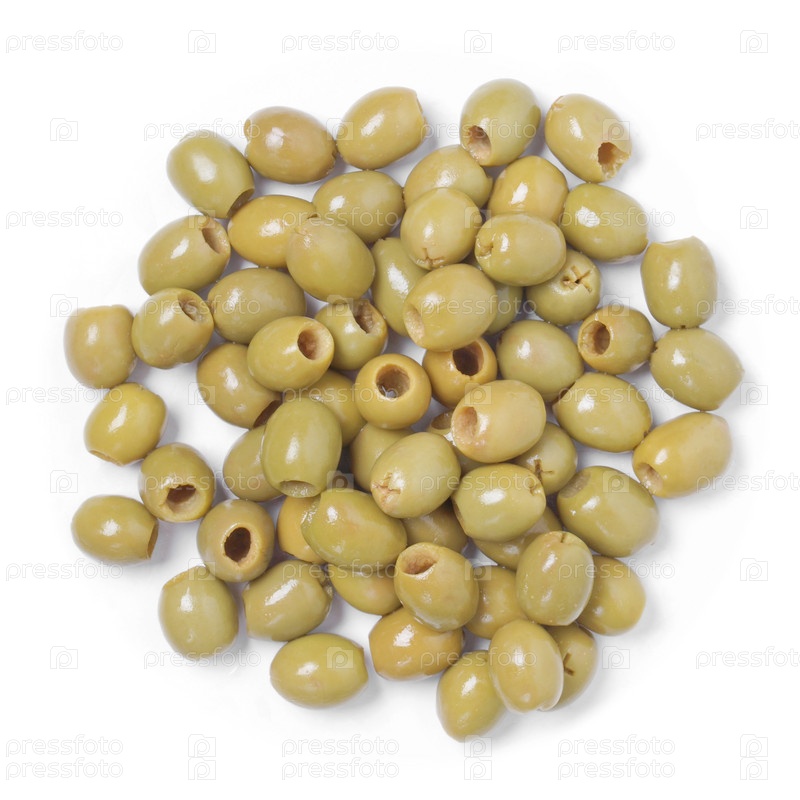 Зеленые оливки на белом фоне