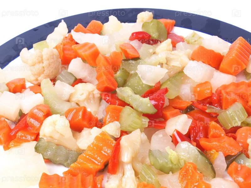 Русской салат с морковью, репой, кабачками, капустой, перцем, сельдереем и луком
