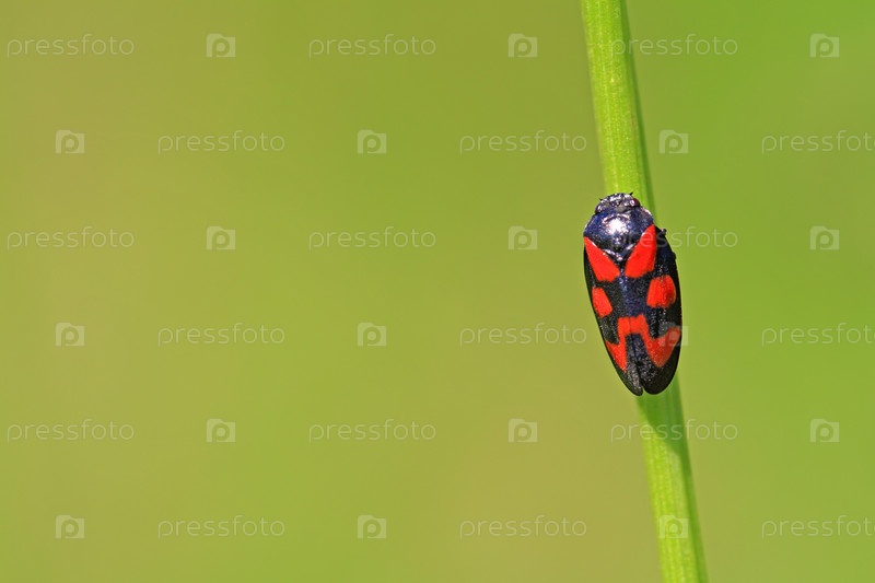 Красный жук на зеленом фоне