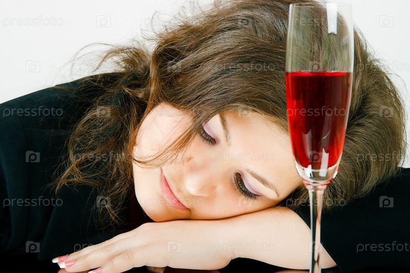Бокал вина и спящая девушка