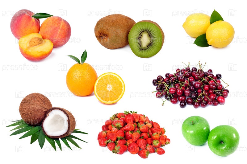 Набор свежих фруктов, изолированных на белом фоне