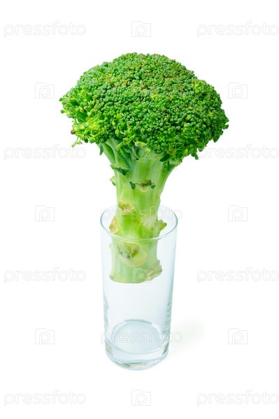 Брокколи в стакане, изолированная на белом фоне