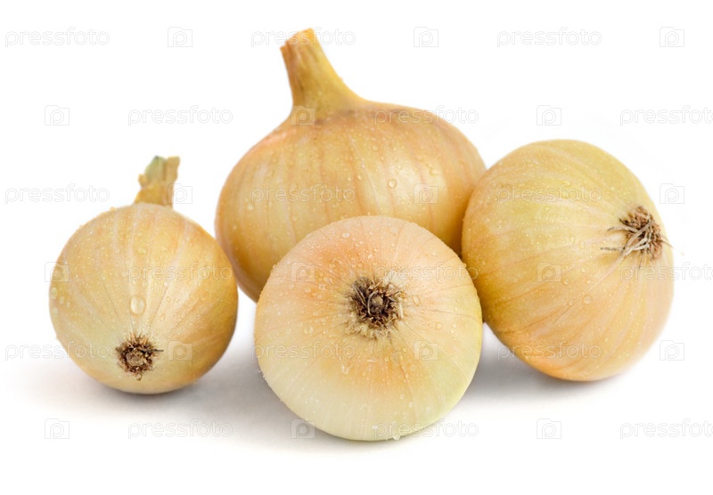 Четыре луковицы на белом фоне