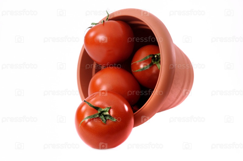 Красные помидоры в пластиковом горшке