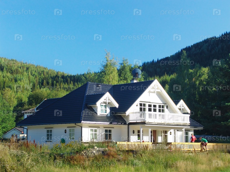 скандинавия. норвегия . котедж. лес. белый. дом. здание.