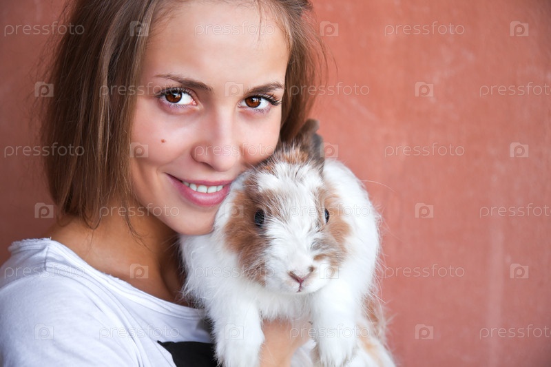 Симпатичная девушка с кроликом