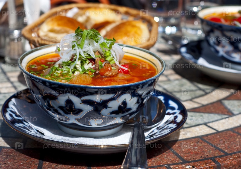Национальное блюдо лагман в ресторане