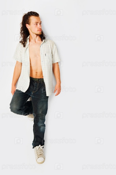 Молодой человек стоит оперевшись о стену