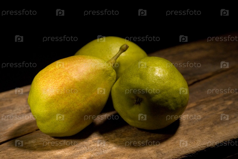 Осенние свежие груши на старой деревянной доске