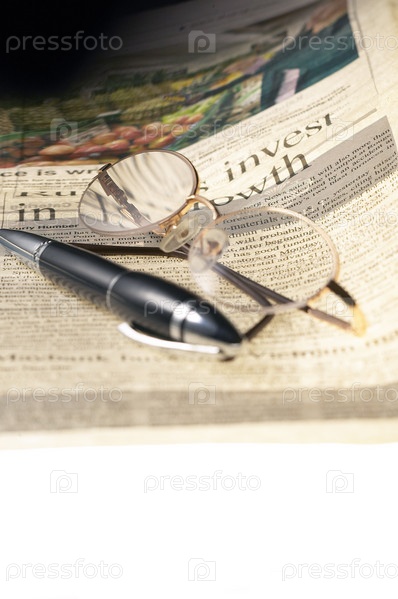 Ручка и очки на газете