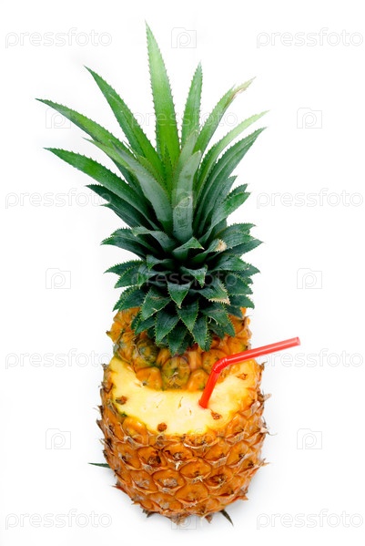 Ананас с соломинкой, изолированный на белом фоне