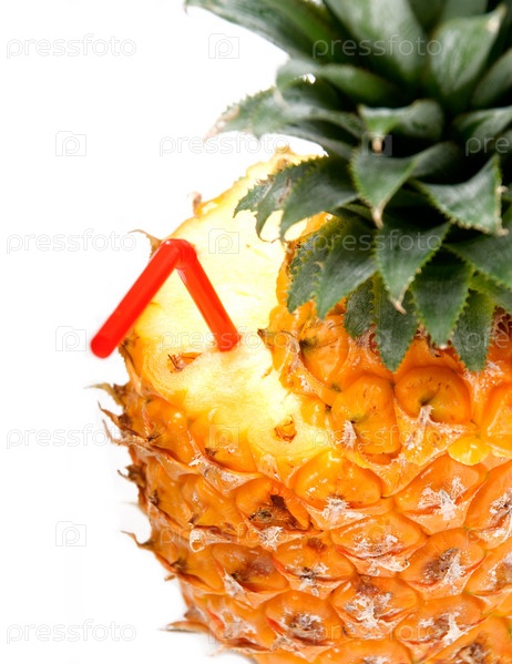 Ананас с соломинкой, изолированный на белом фоне