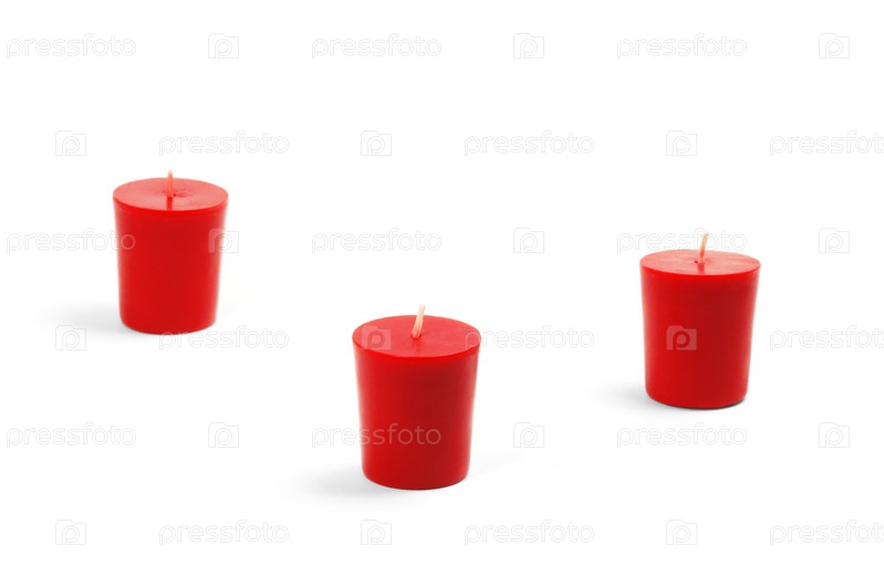 Три красные свечи, изолированные на белом фоне