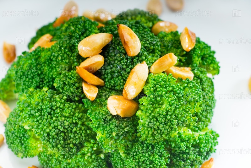 Яркая обжаренная брокколи с миндалем очень полезна