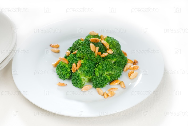 Яркая обжаренная брокколи с миндалем очень полезна