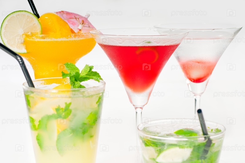 Группа классических красочных коктейлей, изолированная на белом фоне