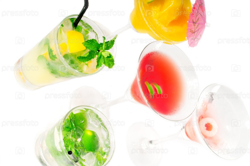 Группа классических красочных коктейлей, изолированная на белом фоне
