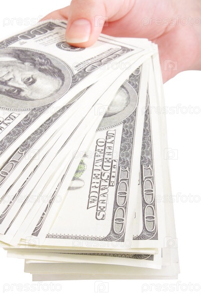 Деньги в руке на белом фоне,крупный план