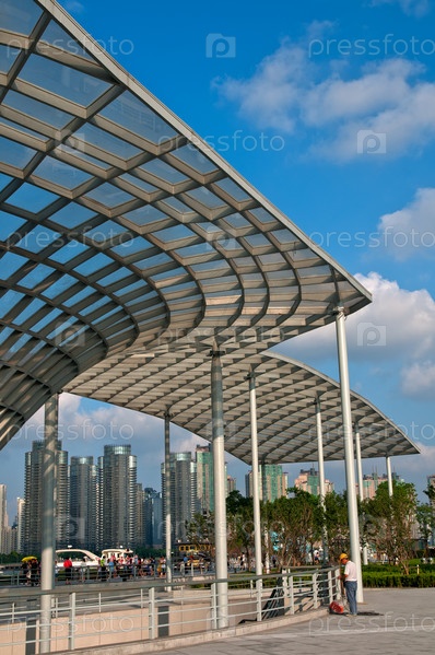 Шанхай, район Пудун, вид из Бунд Пуси в солнечный день