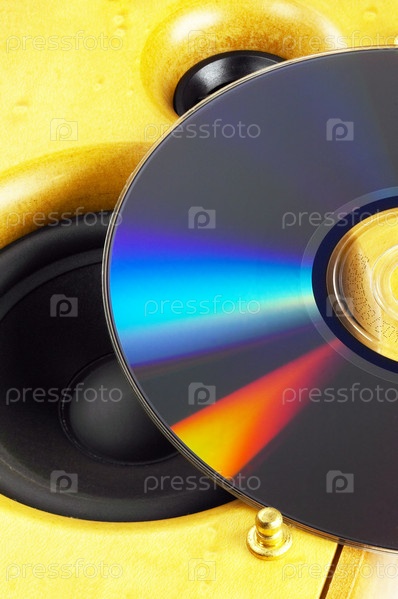 Современная деревянная колонка и компакт-диск