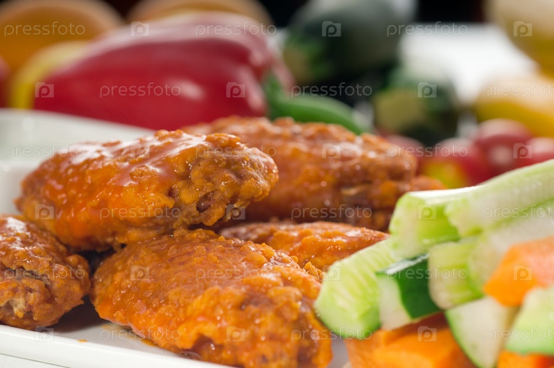 Классические куриные крылышки буффало с пинцимонио и свежие овощи