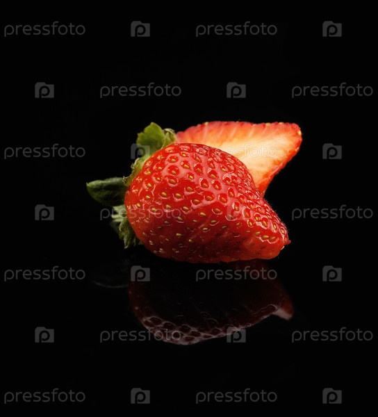 Свежая яркая клубника на черном фоне