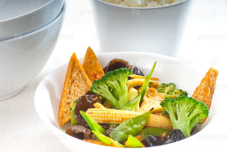 Свежие полезные китайские овощи и тофу. Типичное китайское блюдо