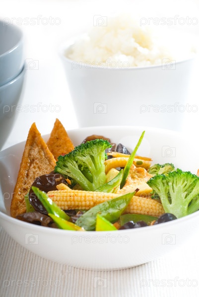 Свежие полезные китайские овощи и тофу. Типичное китайское блюдо