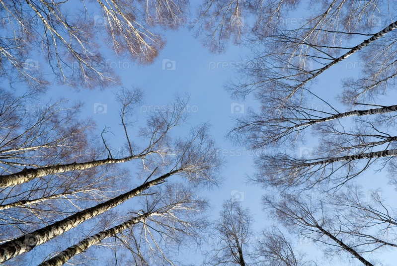 Вид на небо сквозь березы